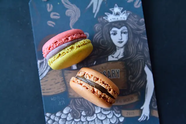 有覆盆子與焦糖海鹽這兩種口味,馬卡龍殼口感只有脆而已,以這價格來說這樣的口感真的不大讓人驚艷。