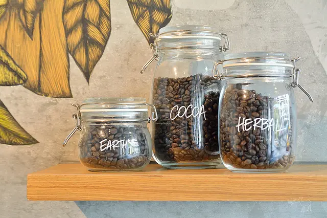 在店內看到許多滿滿的咖啡罐,而這兩罐特別寫了「龍」、「門」,正為該門市名稱。