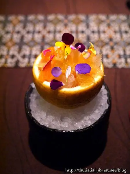 最後是水果與甜點,水果以柑橘類為主題,裡頭有白柚、茂谷等果肉,