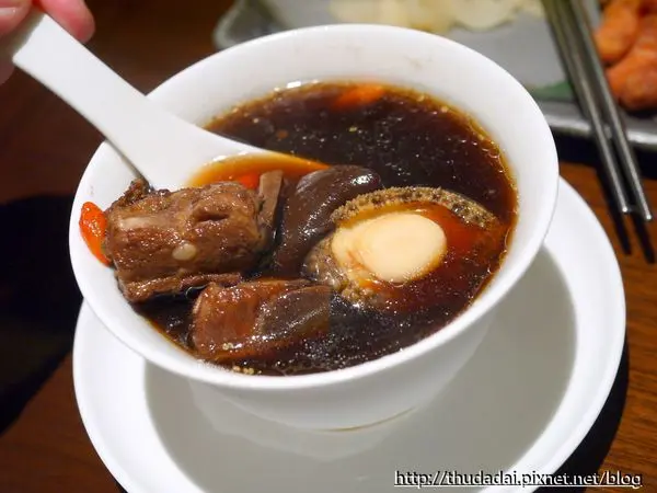 若燉得夠軟,咬起來會格外幸福,這蓋子頭帶有酒香,較肥的外圈以餅來平衡,不錯吃。