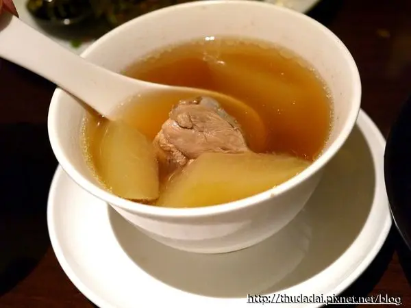 黑蒜帶出近於老菜脯的厚味,而是較為偏酸微甜,青木瓜雞湯則沒什麼特別好提,