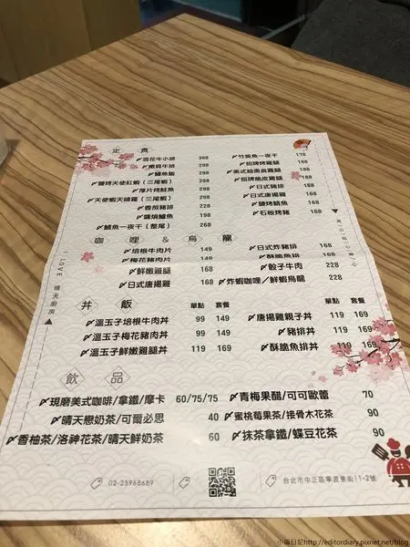跟店員聊了一下,晴天餐廳原先是以義大利麵為主的餐廳,但這兩年改了菜單,改為日式定食、咖哩飯、烏龍麵為主的料哩,對小編而言都不賴,兩種餐點都剛好是我喜歡的XD,另外平日也有提供商業午餐。(完整菜單附於文末。)