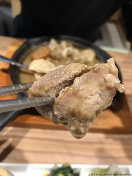 咖哩配上白飯,一湯匙入口,芋頭的香氣混合著咖哩口味而來,算是搭配的蠻融洽的(不過朋友說完全沒吃出有芋頭,傻眼!!)。接著試吃它們的鮮嫩雞腿肉,料理真的肉如其名,又鮮又嫩,這種軟嫩的口感配上咖哩超級下飯,它們家的咖哩還不錯!!