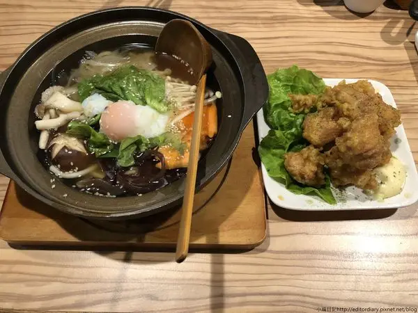 今天點的是唐揚雞湯烏龍(168元),一開始有先確認雞肉跟麵會分開放,有些店會把炸雞放在湯麵裡完全是驚恐指數百分百!