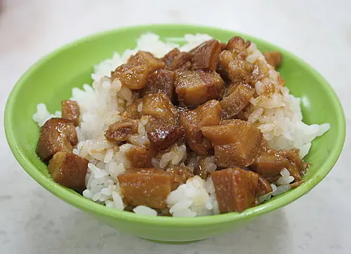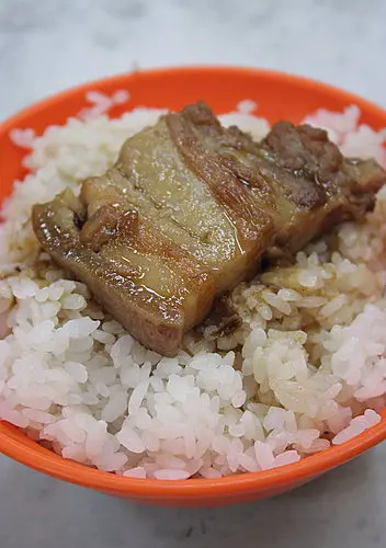 滷肉飯/25元。看得出來是手切的滷肉,滷得沒有很黑,賣相還挺不錯的,不過那天的飯太黏,吃起來就沒有那麼香,有點小小可惜。