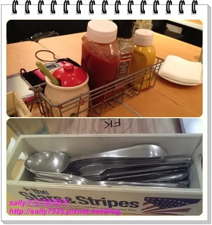 餐桌上面有擺放調味料,要是感覺味道還不夠的話可以自行添加,擺放餐具的木盒子也很美式風格,我還蠻喜歡的!