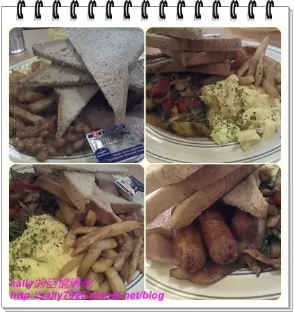 經典早餐裡面有德式小香腸&培根&炒蛋&什錦蔬菜&火腿&炒肉豆&薯條和吐司,一整個就是大豐盛!