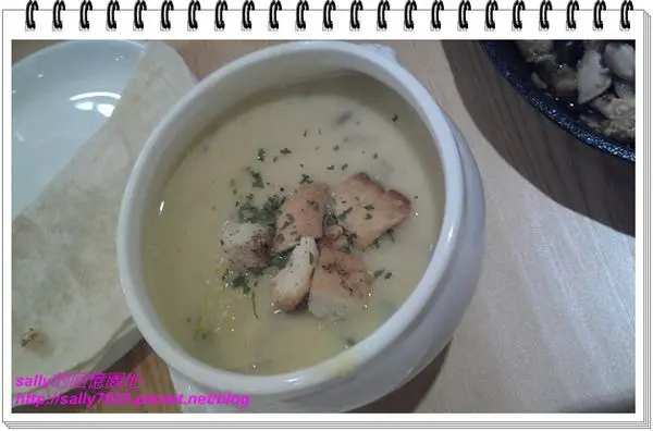 這是店家特製的濃湯,裡面有滿滿的蔬菜,濃湯喝起來很香醇順口,聽店家說他們家的濃湯是用多種菇類和蔬菜一起熬煮的,所以可以放心的給小朋友喝喔!