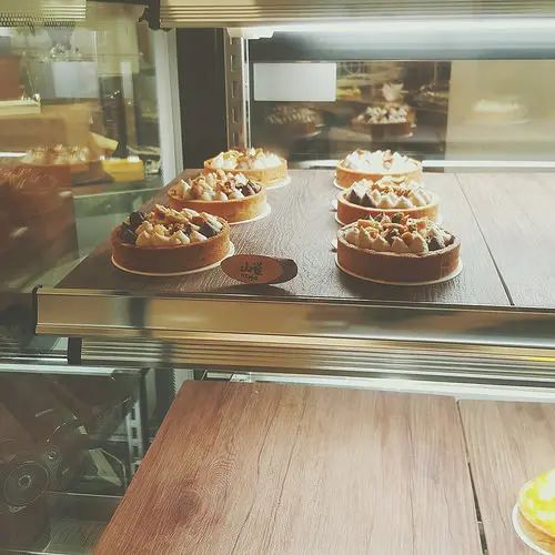 這才發現每款甜點前面的標價牌,都是在一塊塊小小的木頭切片上,寫上各自的名字及價錢,而每款甜點都是一種與自然貼近的詩意命名,像是「山雀」、「苔玉」、「向陽」等等,待會兒再好好介紹他們。
