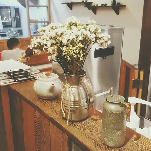 稍微環顧了一下店內環境,果然就和預期的一樣充滿著日式風格,或許也和店裡擺放的花卉及裝飾品也有關係,明亮簡潔且舒適溫暖不失溫度,一如在東京自由之丘或清澄白河之類地區,隨意拐進巷子就會映入眼簾的清新咖啡店。