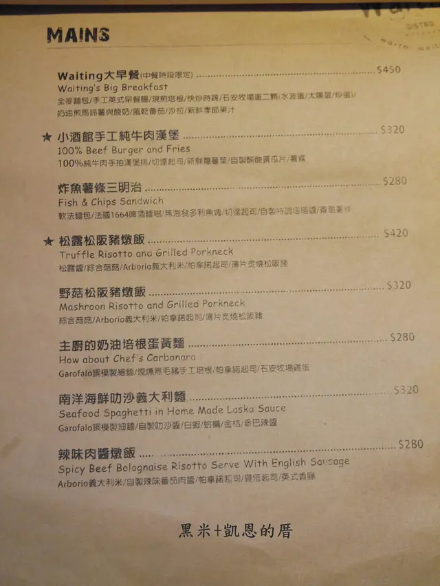 Waiting BISTRO還沒將MENU放在粉絲團上