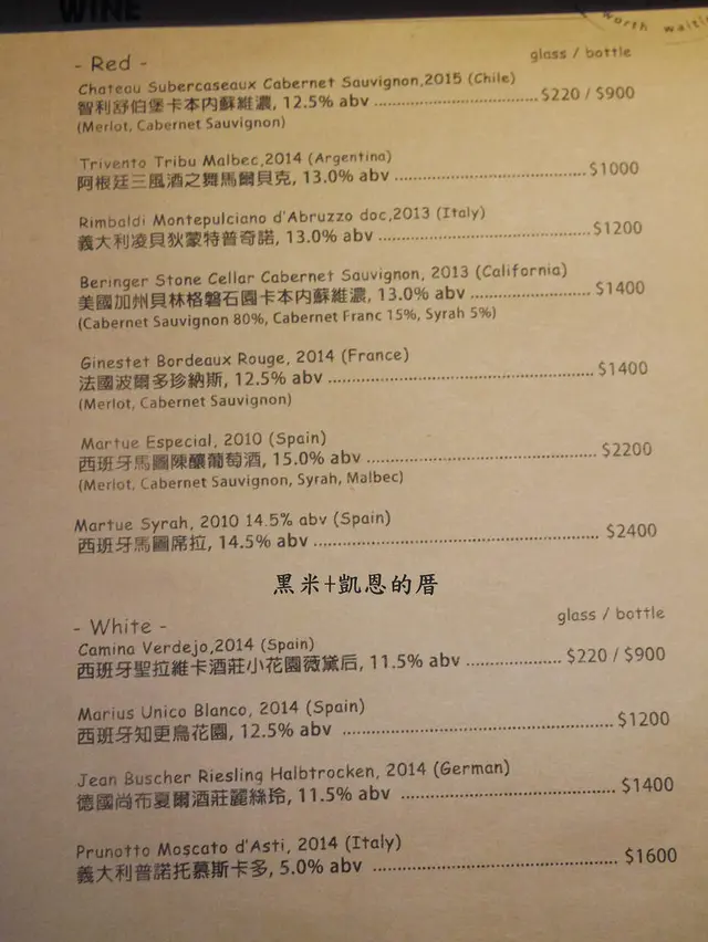 店裡提供各式多款紅酒/白酒/啤酒(台灣精釀/英國/美國/荷蘭/瑞典)