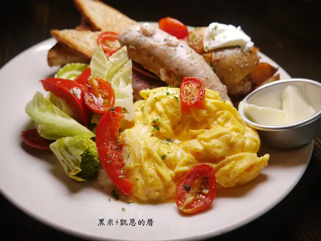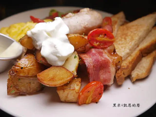全麥麵包/手工英式早餐腸/現煎培根/快炒時蔬/石安牧場蛋2顆