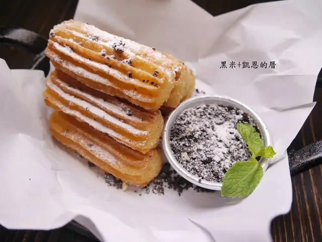 吉拿棒炸的外脆內軟,原味灑上些許糖粉就很好吃