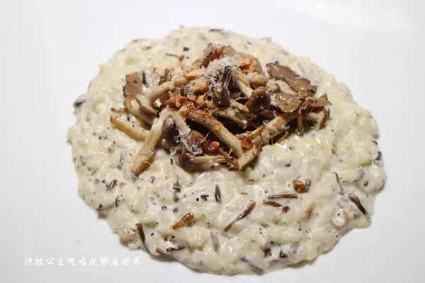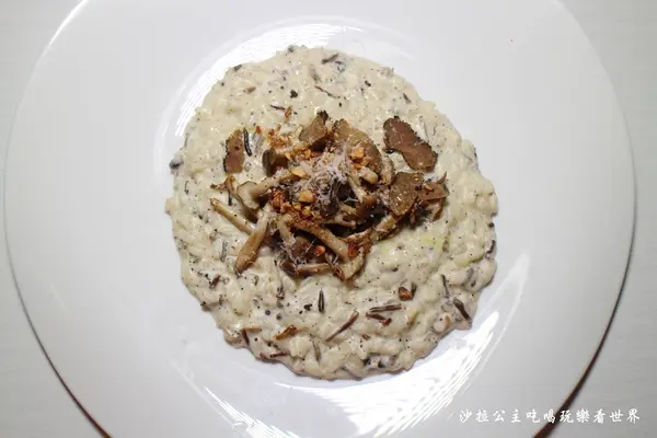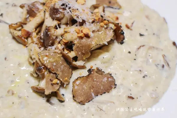 使用冬季松露片、帕達諾起司、逢喜菇、杏仁碎、海鹽
