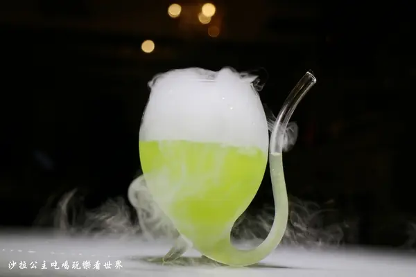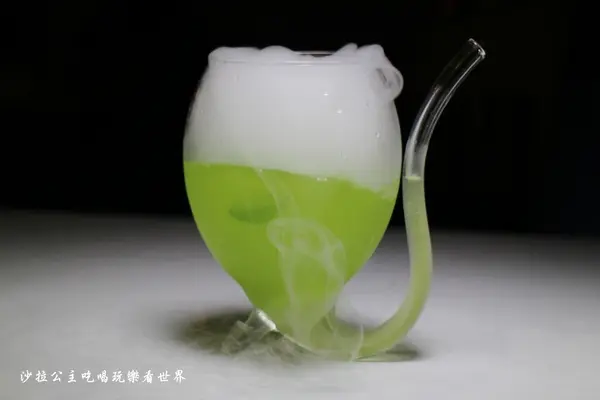 這杯酒旁邊放了一個像剉冰的,水會不斷的滴下來難怪叫禍水,水滿了可以換個盤子,一開始就有附,不過這杯酒真的就像他的名字,換過盤子之後居然有恃無恐,想不到融冰居然如此快,才一下子沒注意我的桌子就水災了
