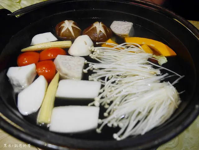 湯頭是採用玉米、番茄、洋蔥、紅蘿蔔、芹菜、白蘿蔔等8種蔬果