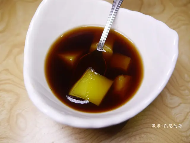 黑糖甜湯中還有加入薑汁,薑味不會很辣,喝下後感覺甜甜暖暖的