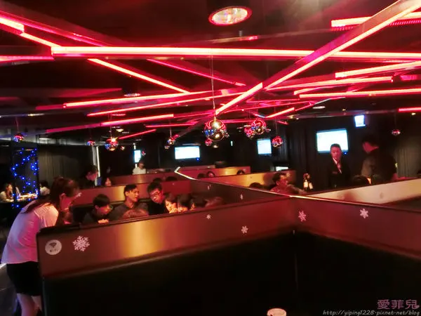 夜店風格的裝潢+上四周撥放韓國熱曲的電視牆