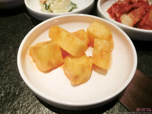 Q彈的肉質搭配泡菜,整個吃起來大呼過癮~難怪韓劇這麼愛播男女主角吃燒烤的畫面吃得都會眉開眼笑~戀情也悄悄提升了XD
