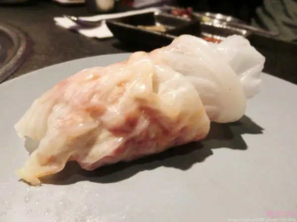 看起來很肥很油,對於男生來說剛剛好女生看了會搖搖頭...怕吃起來很油膩有專業的店員料理就是不一樣會把大部分油脂逼出來,保留油脂的香融入進肉質裡~