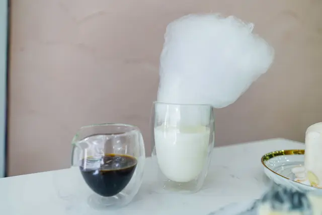 超級可愛的棉花糖拿鐵,很像是擁有一頭博士的瘋狂白髮XD 將黑咖啡緩緩倒入棉花糖雲朵中,棉花糖會漸漸融入拿鐵中。