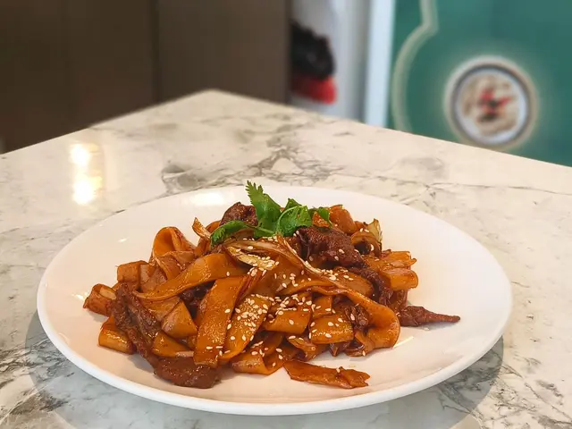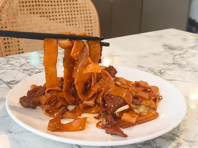 牛肉片厚實吃起來略帶彈性,河粉上裹上滿滿的醬汁,二者都相當入味