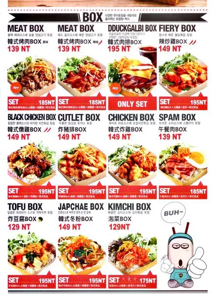 各式Box套餐,除了配好的set外,都可另外加點配料,
