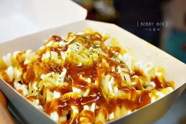 ▼BobbyBox用的是馬鈴薯細薯條,上頭再淋上美乃滋、及韓式炒年糕醬,