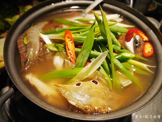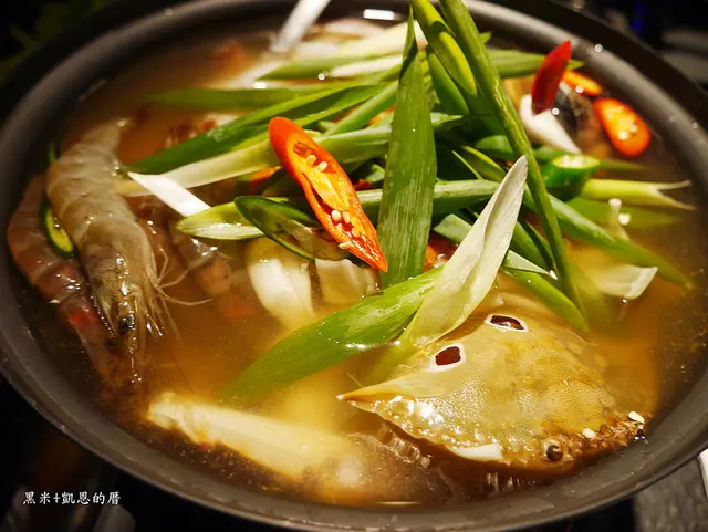 湯頭裡滿滿的海鮮:三點蟹、透抽、蝦、蛤蠣
