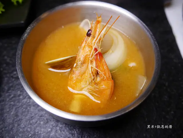 真的像是台灣的味噌湯不過湯頭滿濃郁的,尾段帶有研磨黑胡椒的香氣