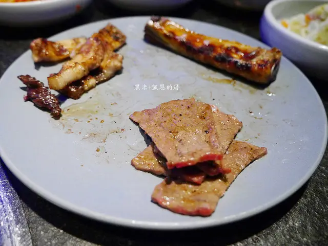 右邊是烤好的豬肋排,本身鹹度也很夠,越嚼越香