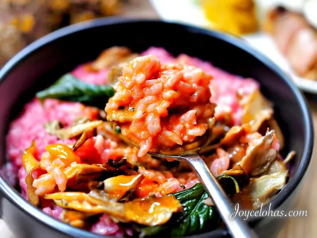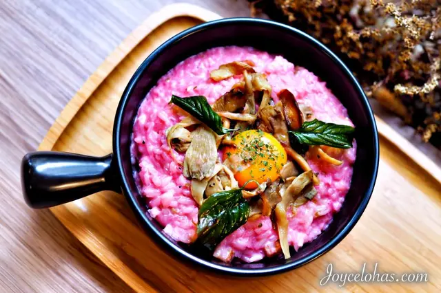 ▼用甜天然的菜根上色呈現粉紅色的燉飯,味道帶著淡淡奶香,不時吃到香腸丁多了分鹹意,吃到菇類則是多了分爽口感,算是沒有驚喜卻也十分涮嘴的味道囉。