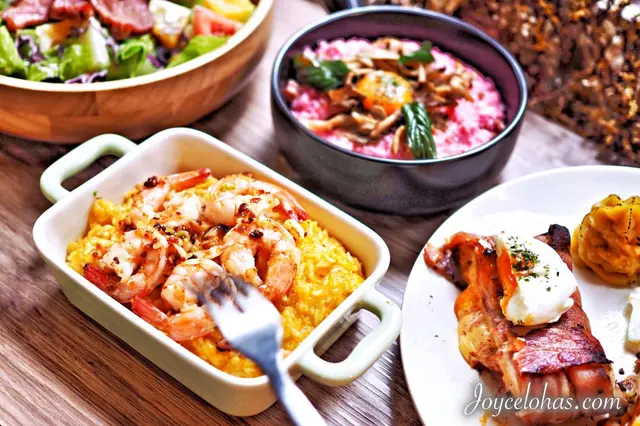 特別在顏色上設計過的鹹點,口味好,視覺也很賞心悅目,總是可以讓我食慾大開! 吃過幾種口味都滿意!特別推薦:「火山牛肉」、「南洋金瓜鮮蝦燉飯」、「培根盒子」。