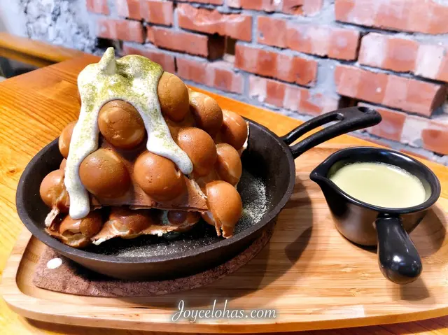 最喜歡這裡多種類可以選擇的雞蛋仔,原味加上麻糬本來就很好吃(當然如果還要好拍建議要點口味豐富一點點的),搭配冰淇淋後更是夢幻的讓人迷戀,吃過的幾種口味都滿推薦:「珍珠奶茶雞蛋仔」、「厚抹茶燒紅豆 鐵鍋雞蛋仔」、「黑糖拿鐵」、「記憶果汁」、「優格野莓冰沙」。