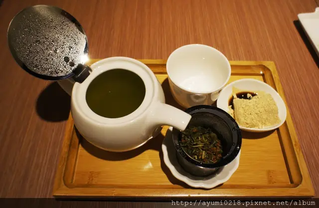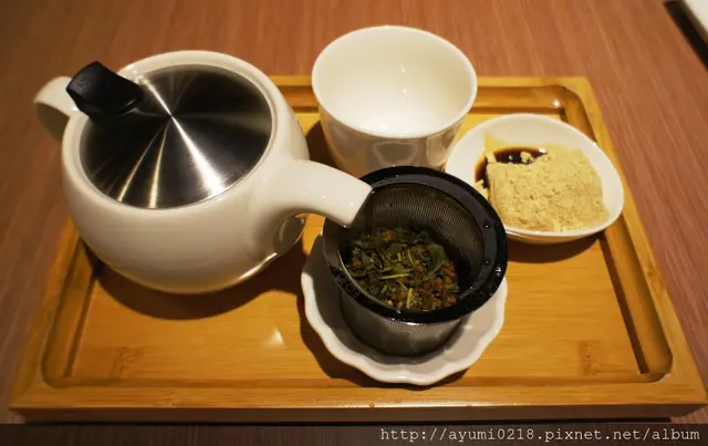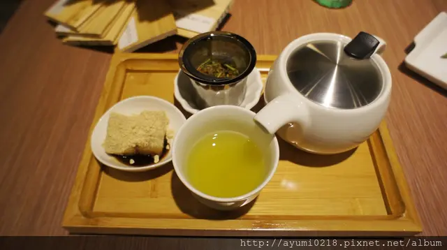 抹茶玄米茶附上小西點-黃豆蕨餅我把他送給春雞哥