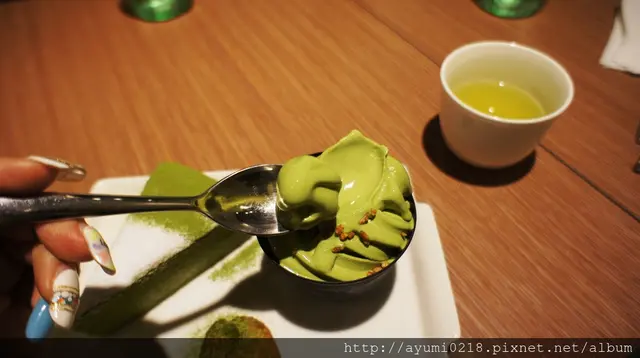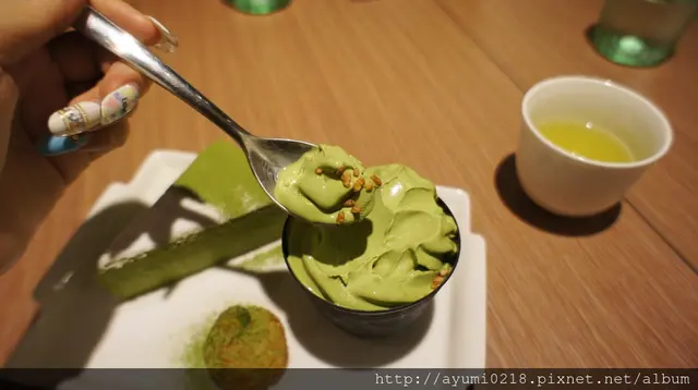 抹茶的味道非常日本連擺盤都有它的巧妙貼心的附上了抹茶霜淇淋~單點要100你說能不大器嘛!!