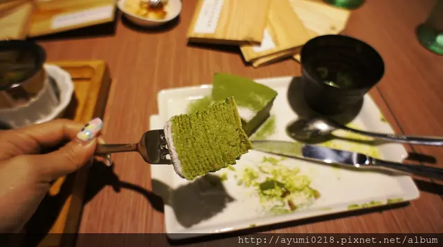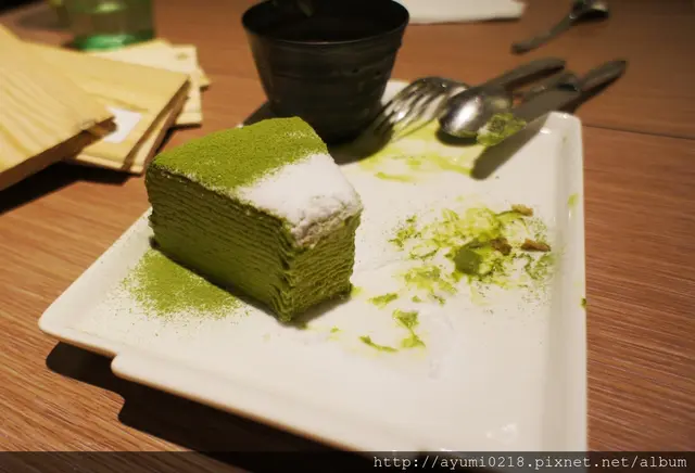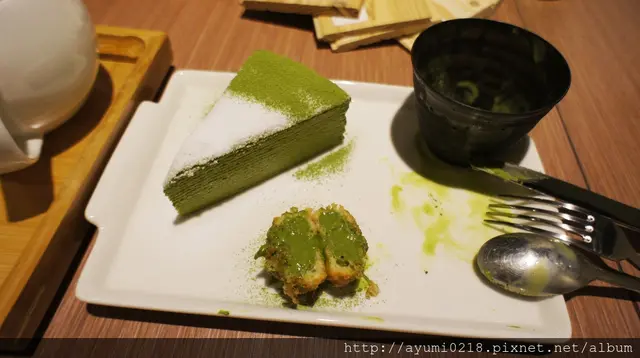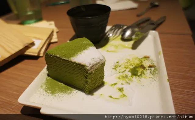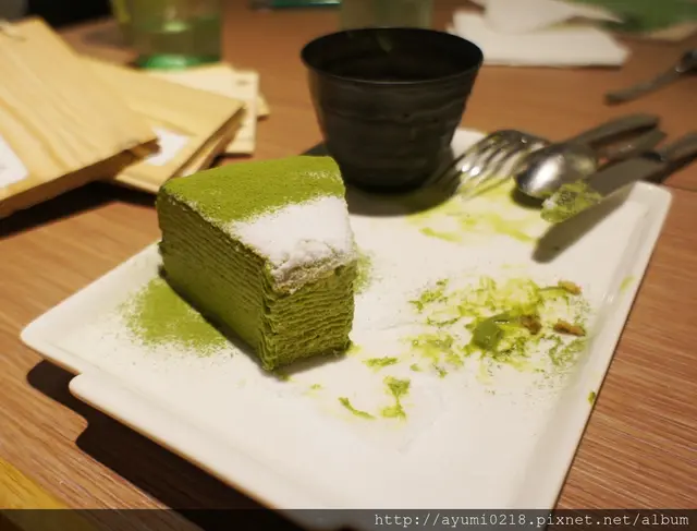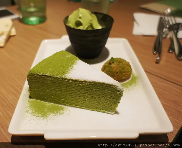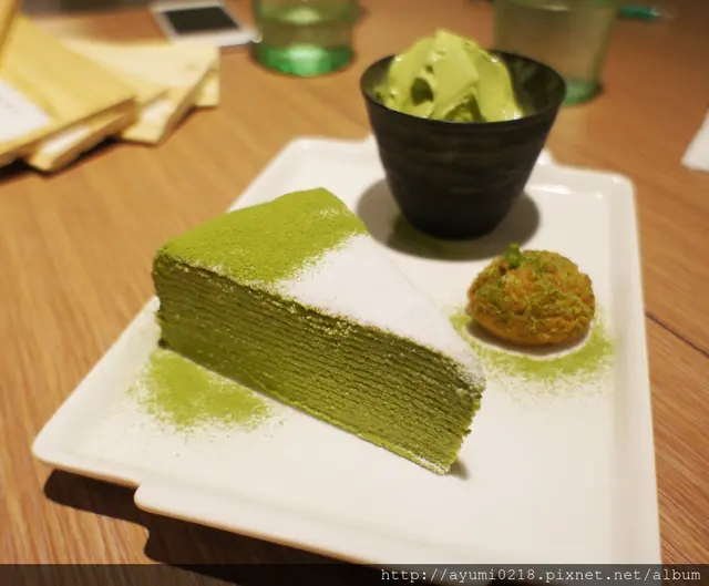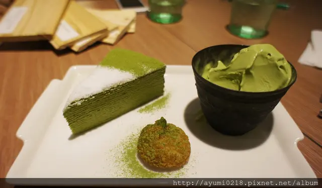 號想吃和茗不用再跑永康街摟東區巷弄內悄悄開幕位在東區近市民大道巷弄內斜對面是rabbit & eat eat bristo 店門口的帥哥看來非常想入鏡~我左拍右拍他還是在 提供外帶 已有專屬的fb摟 雖然在辦公~但所有朋友都知道我有職業病~也就任我亂拍~但必須乖乖點餐 有用餐限制1.5h營業到晚上11:00~中午從13:00開業算是晚起的鳥宵夜也可以來這吃 琳瑯滿目~每個都想點最後因為法式千層為假日限定退而求其次的點選抹茶千層蛋糕250(附上霜淇淋~還可以選口味)本日我就是要抹茶到底的點了抹茶霜淇淋另外飲品本想喝抹茶拿鐵覺得好像太over~改了最人氣得"抹茶玄米茶"可回沖 點餐劃在這上頭~紅色筆的表示尚未供餐分為正面跟背面感謝春雞oba請客 店內走道寬廠採光也不錯不收服務費~水跟餐具自取 化妝間也很日式~乾淨 門口進來的這桌最有fu連燈飾都可愛 目前全台共有三間店摟!! 店內座位不少 開放式的吧台及廚房 拍照完食物也上來了~我的抹茶千層看這樣子真的完全忘記喉嚨痛