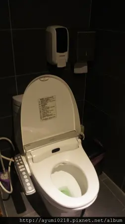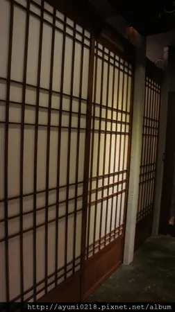 很隱敝的洗手間~藏在這片木門後.非感應式門.請自己向右推...別傻傻站在木門前