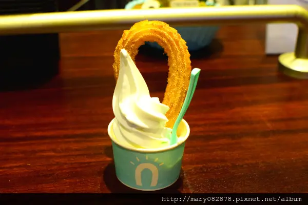 一口溫熱的吉拿棒、一口冰沁的起司霜淇淋,雙重享受啊!