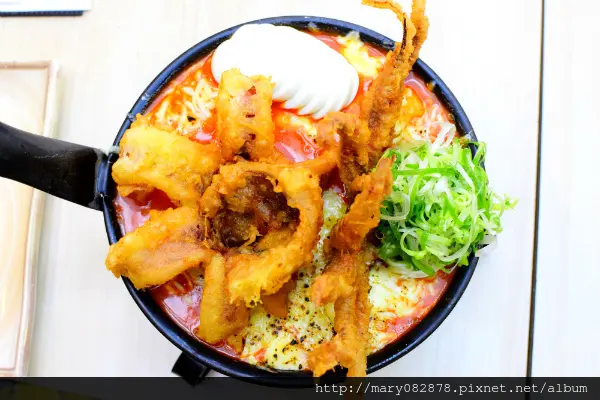 配上蔥絲、泡菜,有清爽和清脆的口感,也彌補一些罪惡感