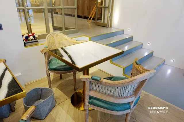大理石花紋桌面超美的,太適合拍照了,桌下有置物籃可以放置包包等物品