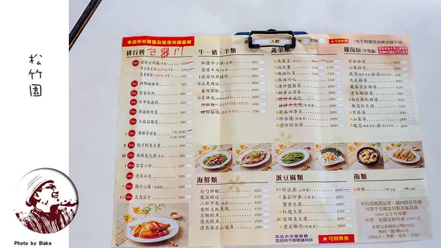 松竹園菜單分成幾個部份,TOP 20熱點菜色,第一次來點雞肉就對了,其他先亂點,雞肉有分成白斬古早雞、黃金脆皮雞跟茶香燻雞三種,都是半隻450元,幾乎每一桌都會個點兩種雞肉來吃,松竹園菜單還有牛豬羊肉類料理、湯類料理跟山菜料理等等,當然也有合菜選擇,消費滿1000元會送小饅頭,沒有收取額外的服務費,有些該自助的就自己來吧!