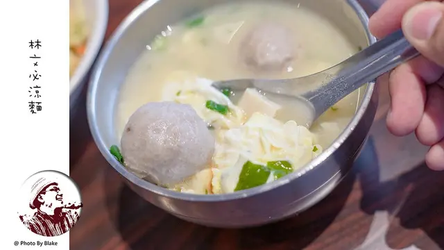林文必涼麵的味噌蛋花貢丸湯其實比涼麵還好吃,主要味噌跟別人不太一樣,喝起來不會太死鹹或太重的發酵味,鹹度是很有的,但是很清爽,會帶有一點回甘的風味,裡面還有蔥花的香氣,料的部份因為都是全點,除了原本的豆腐之外,還有蛋花跟貢丸,蛋花煮得很嫩,但是我還是喜歡較不熟一些的,貢丸蠻大顆的,咬起來有彈性也有肉汁感。