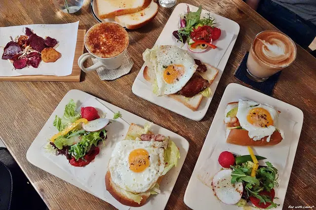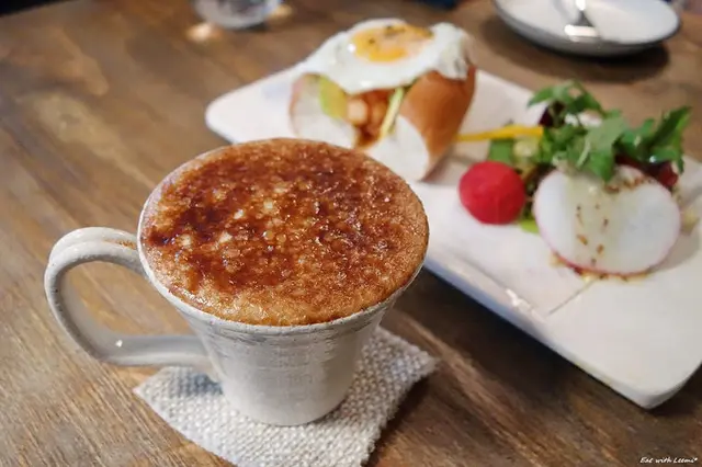 飲料類的水準以早午餐店來說很不錯,最喜歡擂擂拿鐵將質樸風味轉化的更香甜順口的作法,上頭厚厚一層奶泡也相當柔密討喜,黑糖脆片奶茶表層烤過的香氣與糖片微硬脆的口感都很棒,底下的奶茶濃順略甜也正好是我喜歡的類型,不過拿鐵用的咖啡豆則是略偏酸些,比較喝不慣。