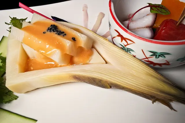 竹筍鮮甜可口, 相當嫩, 搭配醬汁更棒