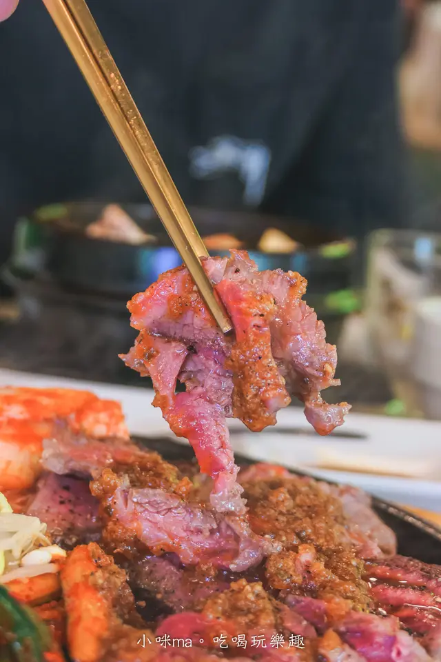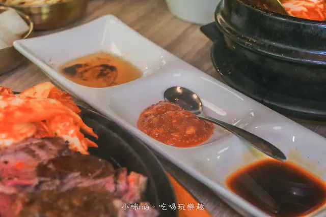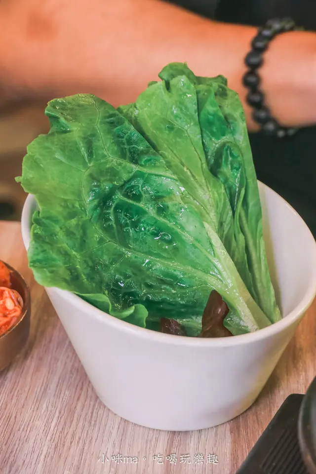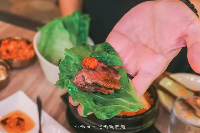 夾上韓式小菜跟一旁的辣醬,生菜清脆配上軟嫩的牛肉,真的一口接一口