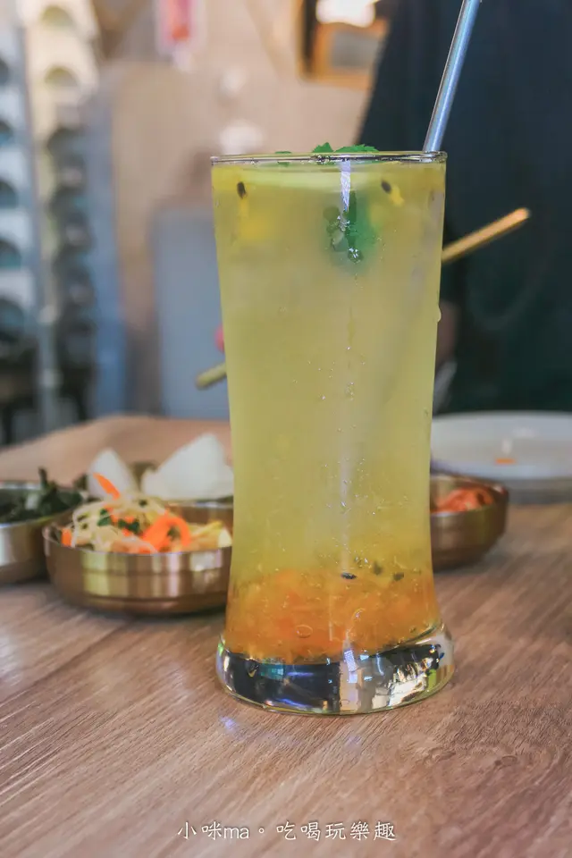 柚香氣泡飲也很爽口,喝之前要先攪拌均勻,很適合配鹹辣的韓式料理