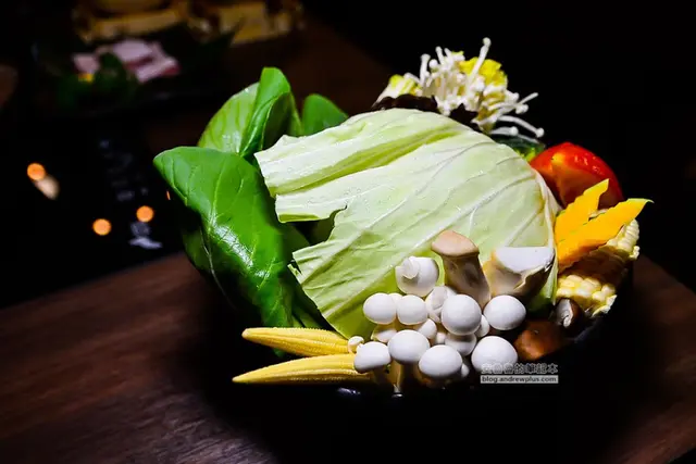 菜盤裡面的有乾淨新鮮的高麗菜、娃娃菜、青江菜、金針菇、美白菇、鮮香菇、雲耳、番茄、玉米、南瓜,與玉米筍,蔬菜經過新鮮的椰子雞湯煮過之後,除了本身的鮮甜,又多了椰子的香甜,是別的地方吃不到的味道,相當獨特!