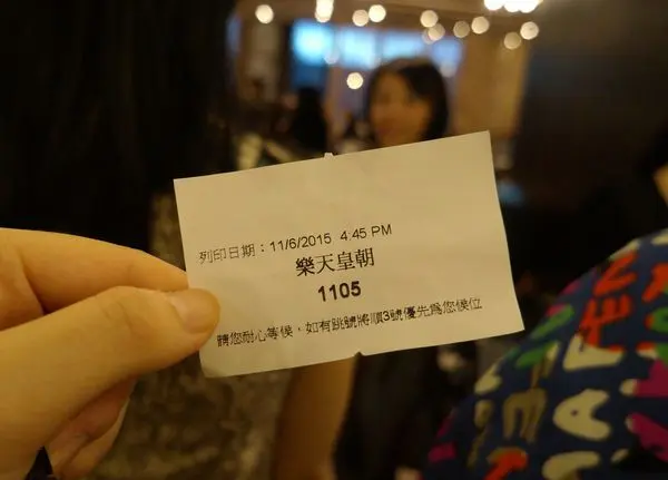 我們約莫下午4點左右用餐,要先到領台,像人員告知人數,會送上下圖這張,